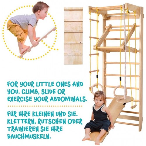 Rebriny s príslušenstvom je cvičebná stanica, ktorá je vhodná pre deti aj dospelých. Sada je vhodná pre deti od 3 rokov a pod stálym dohľadom dospelých. Rebriny sú ideálne na použitie doma, v škole a vo fitness štúdiu. Možno ich dokonca použiť ako pomôcku pri fyzioterapeutických ošetreniach.