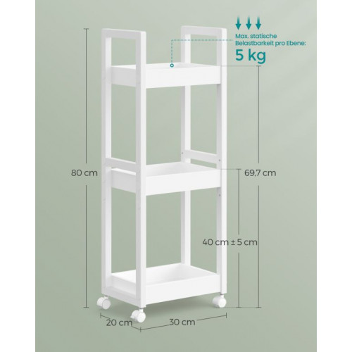 Kúpeľňový regál s kolieskami 20x30x80 cm, biely
