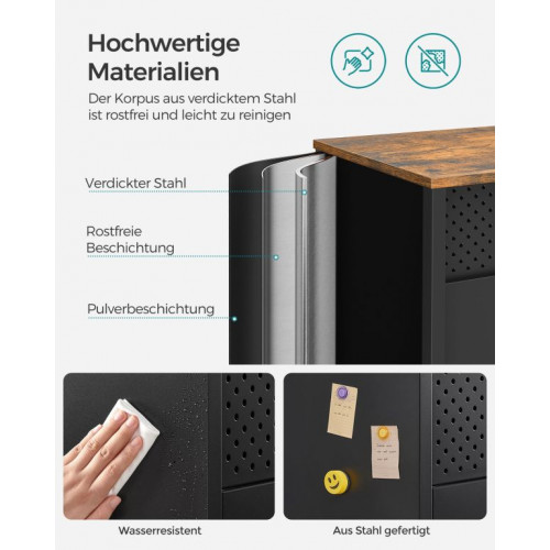 Táto dvojdverová skriňa v priemyselnom štýle kombinuje eleganciu dreva s pevnosťou kovu. Rustikálne hnedé tóny v kombinácii s čiernym oceľovým rámom vytvárajú moderný, ale útulný vzhľad. Nastaviteľné police vám umožňujú uložiť všetko od kníh po dekorácie podľa vašich potrieb.