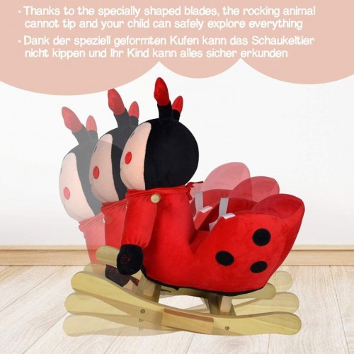 Naša malá hojdacia hračka môže byť dokonalým spoločníkom pre Vaše dieťa a jeho cestou do sveta kreatívnej hry a fantázie. Hojdacia lienka je vybavená nastaviteľným bezpečnostným pásom a má dve praktické držadlá, ktoré udržujú rovnováhu, a opierky nôh, ktoré zaisťujú stabilitu. Trojstranný útulný priestor na sedenie a navyše hudobné funkcie - Vaše dieťa nepotrebuje viac, aby si mohlo začať hrať.