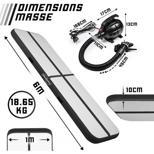Physionics Airtrack nafukovacia žinenka, 4 m, čierna