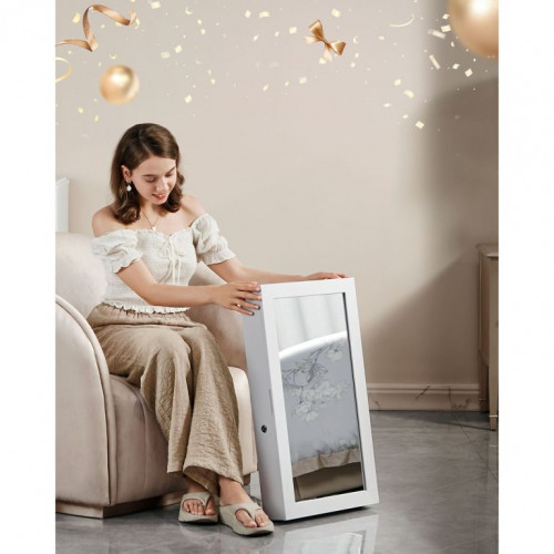 Objavte šperkovnicu, ktorá spája praktickosť so štýlom. Elegantný biely dizajn s veľkým zrkadlom dodá vašej spálni či predsieni šmrnc a zároveň poskytne dokonalý prehľad o vašich šperkoch. Všetky poklady budete mať vždy po ruke a vďaka uzamykaniu zostanú v bezpečí. Ideálne pre každú ženu, ktorá si chce užívať krásu aj poriadok.