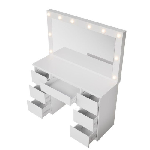 Toaletný stolík s LED zrkadlom a 7 zásuvkami, biely