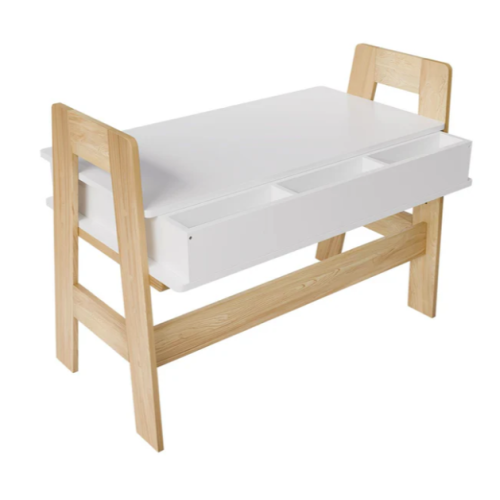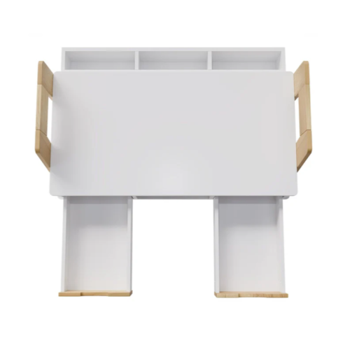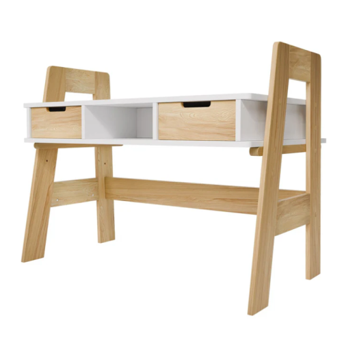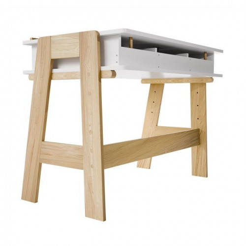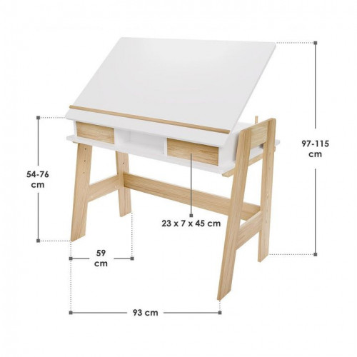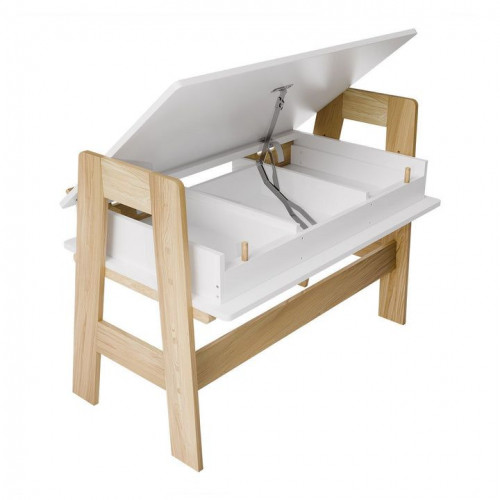 Robustná konštrukcia z odolného dreva s melamínovou povrchovou úpravou zaručuje dlhú životnosť a jednoduchú údržbu. Štyri priestranné priehradky a dve zásuvky ponúkajú dostatok miesta na školské potreby a výtvarné materiály. Výškovo nastaviteľná pracovná doska sa dá ľahko prispôsobiť potrebám rastúceho dieťaťa.