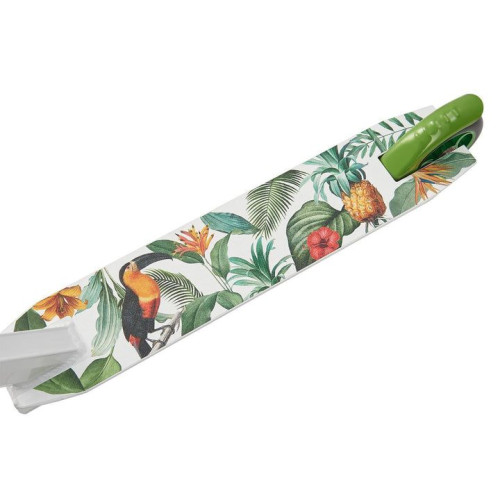 Stabilná konštrukcia z hliníka a ocele zaručuje bezpečnosť pri jazde a skákaní. 100 mm PU kolieska s hliníkovým jadrom a ložiskami ABEC 9 zaručujú plynulú a rýchlu jazdu. Otočné riadidlá o 360°, TPR rukoväte a protišmykový povrch umožňujú ľahké ovládanie a pohodlie. Kolobežka je čiastočne zmontovaná a pripravená na okamžité použitie.