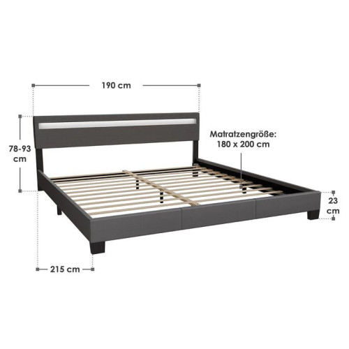 Stabilná konštrukcia z MDF a kovu zaisťuje dlhú životnosť a jednoduchú montáž. Latkový rošt s výstužnou stredovou lištou poskytuje optimálnu podporu pre matrac 180x200 cm. Ľahko udržiavateľný poťah z ekokože stačí utrieť vlhkou handričkou. LED pásik ponúka 16 farieb a je ovládaný diaľkovo.
