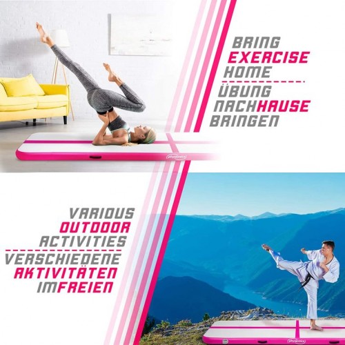 Nafukovacia gymnastická žinenka, 300 x 100 x 10 cm, ružová