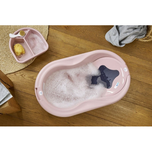 Podložka do vaničky TOP značky Rotho babydesign. Poskytuje bábätkám viac pohodlia a bezpečia pri kúpaní - predovšetkým je vhodná od narodenia do cca 6 mesiacov. Podložku na kúpanie je možné používať, kým dieťa nevie sedieť bez opory. Anatomicky tvarovaná s protišmykovou podložkou. Na vaničku sa ľahko prichytí pomocou spodnej prísavky a horného háčika. Moderný dizajn a robustný materiál – kvalitný recyklovateľný polypropylén bez škodlivých látok. Vyrobené v Nemecku.