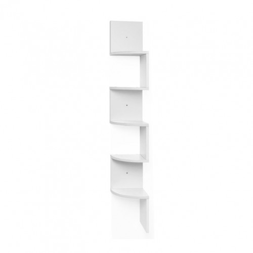 Rohová závesná polica, biela, 5 políc, 20×127 cm