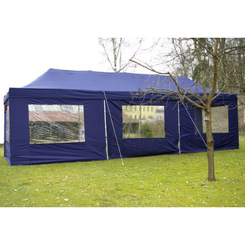 Záhradný nepremokavý stan, ktorý sa vďaka automatickému nožnicovému systému vyznačuje pevnosťou, odolnosťou a stabilitou. Nožnicová konštrukcia má v zloženom stave tvar kvádra, preto je dobre skladná. Vďaka nízkej hmotnosti hliníkovej zliatiny sa s konštrukciou ľahko manipuluje. Stan ľahko zložíte a rozložíte jediným pohybom! Zloženú konštrukciu spolu so stanovými plachtami ľahko preveziete v osobnom aute. Záhradný stan je ideálny na festivaly, pikniky a všetky akcie na záhrade, pláži alebo na trhu. V letných dňoch Vám poskytne dostatok tieňa a v chladnejších večerných hodinách Vás ochráni pred mrazom a vetrom. Vďaka nepremokavej strešnej krytine Vás ochráni pred dažďom.