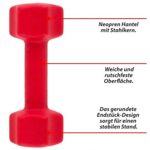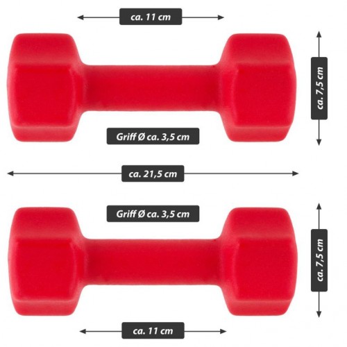 Optimálne činky na použitie v posilňovni aj doma, vhodné na tréning hrudníka, paží, bicepsov a tricepsov. Činky sú potiahnuté neoprénovou vrstvou - tá vytvára mäkký a nekĺzavý povrch, ktorý sa ľahko a pohodlne drží a je odolný proti poteniu. Jadro vyrobené z vysoko kvalitnej ocele zaručuje dlhú životnosť. Zaoblená konštrukcia koncov zaisťuje stabilné umiestnenie, ktoré zaisťuje Vašu bezpečnosť a zabraňuje skotúľaniu. Neoprénový kryt zabraňuje poškodeniu podlahy alebo úložných priestorov.
