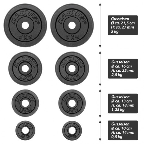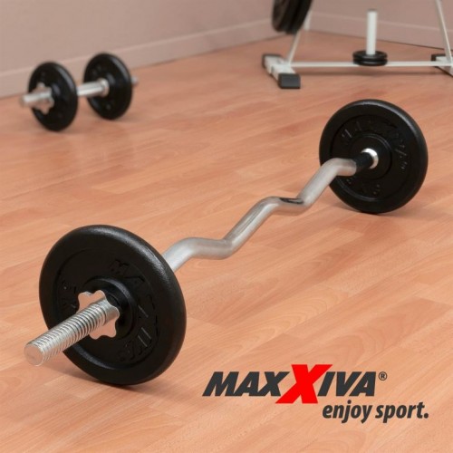 MAXXIVA liatinový obojručný set zo závažím, 120 cm, 26 kg