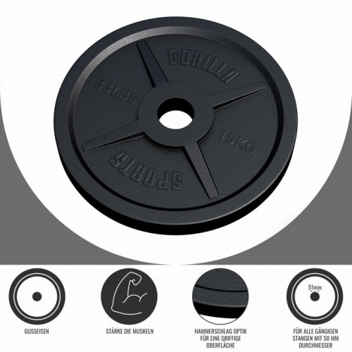 Gorilla Sports Záťažový kotúč 50/51 mm, liatina, 15 kg