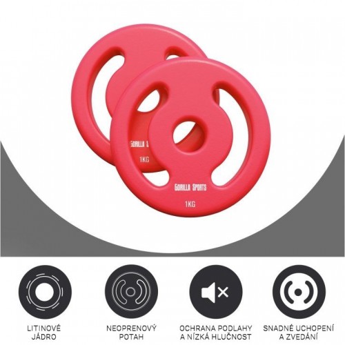Gorilla Sports Sada záťažových kotúčov 2 x 1 kg, červená