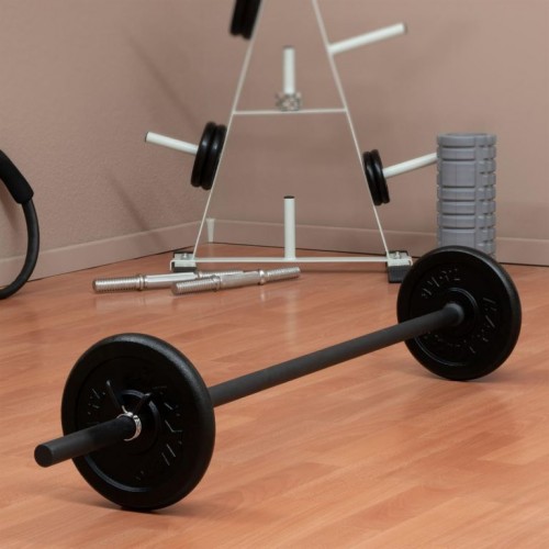 Optimálna činka na použitie v posilňovni aj doma, vhodná pre tréning hrudníka, paží, ramien, krku, posilňovania, rehabilitačné športy, kulturistiku, bench press, mŕtve ťahy, drepy, výpady, kľučky a ďalšie. Je vhodná pre dostupné záťažové dosky s 3 cm držiakom kotúča a priemerom otvoru 30 / 31 mm. Protišmyková doska je upevnená poistným krúžkom, aby sa zabránilo skĺznutiu závažia pri pohybe. Pružiny, ktoré je možné rýchlo vymeniť, upevňujú závažie bezpečne na tyč činky a zaručujú jednoduchú výmenu závaží. Rukoväte sú krížovo vrúbkované na bezpečné uchopenie.