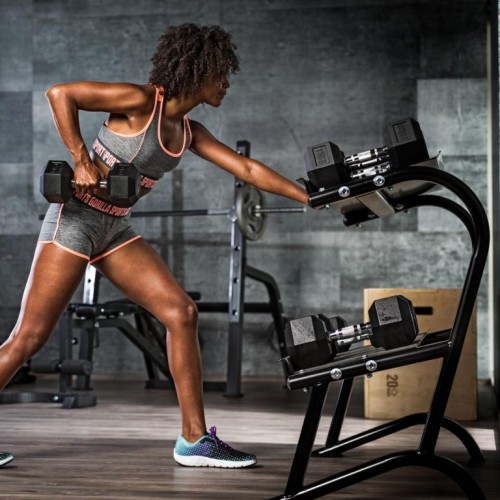 Jednoručné činky sú vyrobené z liatiny potiahnuté silnou vrstvou gumy.