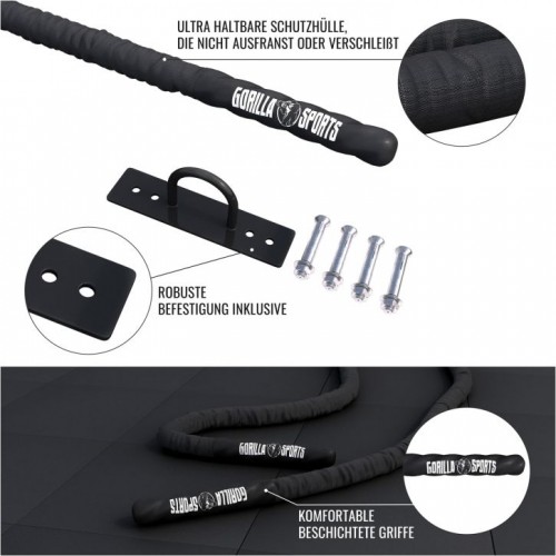 Gorilla Sports Posilňovacie lano s držiakom, 15 m x 3,8 cm