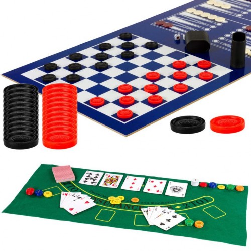 Tento veľký multifunkčný hrací stôl pre 15 hier je vhodný pre rodinu a aj hry s priateľmi! Hracie pole a všetko príslušenstvo (tága, gule, pálky, puk, karty, kocky, figúrky a mnoho ďalšieho) sú umiestnené prakticky pod každou hracou doskou, takže ich máte vždy po ruke. Stôl je vhodný či už do odpočinkovej miestnosti u Vás doma alebo aj do školy či družiny.