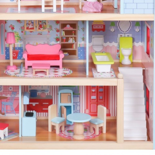 - trojposchodový 5-izbový drevený domček pre bábiky s balkónom
