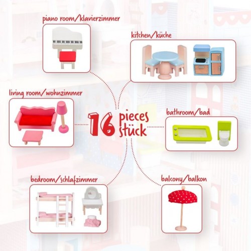 - 1 x domček vrátane nábytka a doplnkov (16 kusov)