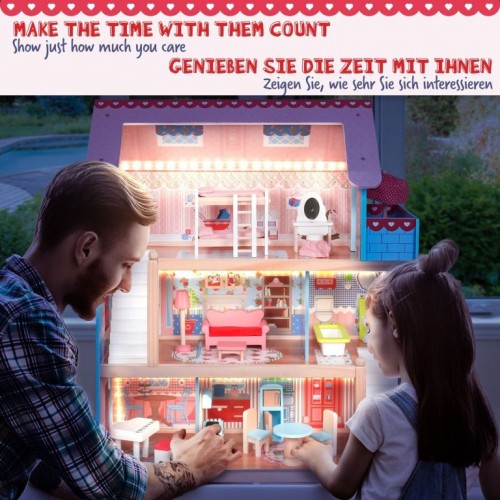 Drevený domček pre bábiky s LED svetlom, 60,5 x 71 x 32,5 cm