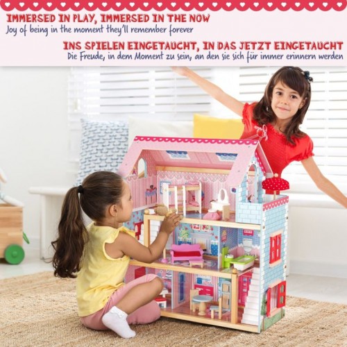 S týmto nadčasovým darčekom sa môžu Vaše deti na niekoľko hodín ponoriť do svojho sveta plného fantázie. Deti majú možnosť zmeniť usporiadanie nábytku a vytvoriť si vo svojich hlavách realistické scenáre na podporu kognitívneho a sociálneho rozvoja. Táto farebná hračka je vhodná pre spoločnú hru niekoľkých detí. Domček môžete používať doma, v herni, v škole alebo v škôlke. Nápaditá hra plná fantázie zdravo prispieva k všeobecnému vývoju dieťaťa.