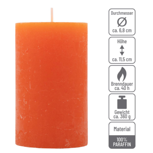 Vytvorte si príjemnú atmosféru pri každej príležitosti s touto sadou oranžových rustikálnych sviečok. Ich teplé svetlo rozžiari narodeniny, svadby aj rodinné večery a prinesie do vášho domova pocit pohody a útulnosti. Vďaka elegantnému dizajnu sa hodia do každého interiéru a potešia aj ako darček.
