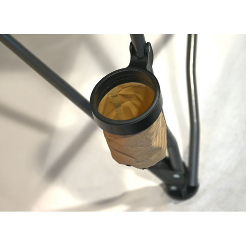 Pravý bok stoličky je doplnený o držiak nápoja so sieťovým dnom. Chrbtová časť kresla je navyše vybavená bedrovou opierkou, ktorú je možné nastaviť pomocou popruhov na bokoch.