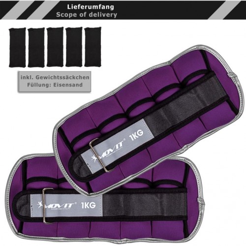 MOVIT Neoprénové reflexné záťažové manžety, 2x1 kg, fialové