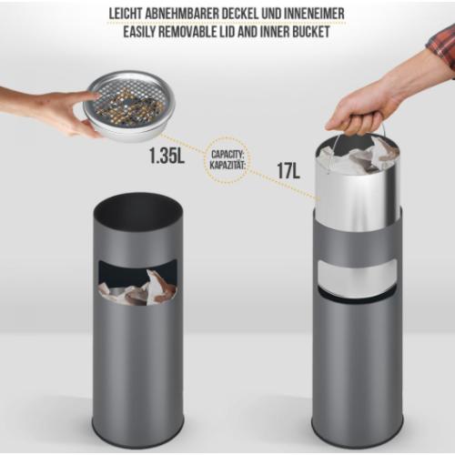 Popolník s odpadkovým košom, nerez, 17 l, antracitový