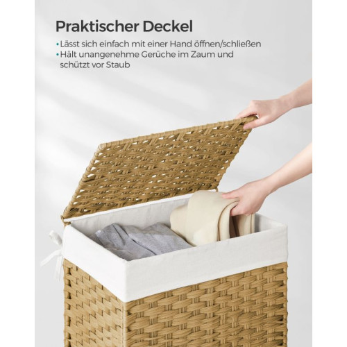 Pletený košík na bielizeň s vekom a vyberateľnou vložkou,90l