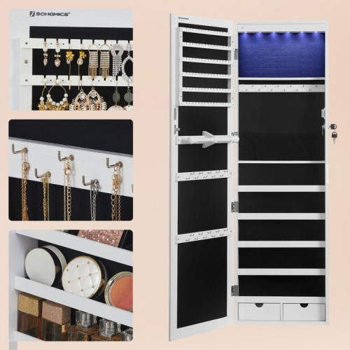 Vneste do svojho domova poriadok a štýl s touto modernou šperkovnicou, ktorá ponúka dostatok priestoru pre všetky vaše poklady. LED osvetlenie a veľké zrkadlo spríjemnia každý deň a dodajú šmrnc vášmu interiéru.