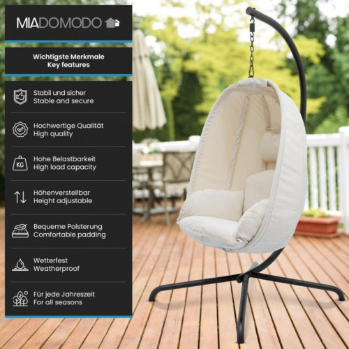 MIADOMODO závesné hojdacie kreslo béžové, nosnosť 160 kg