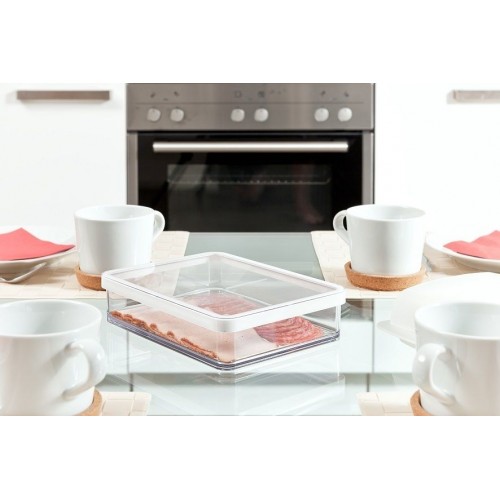 Sú plne transparentné, so silikónovým tesnením vo veku. Zaisťujú čerstvosť skladovaných produktov a chránia pred vonkajšími vplyvmi a vlhkosťou. Materiál neobsahuje BPA a je schválený pre styk s potravinami. Vhodné do umývačky, chladničky či mrazničky.