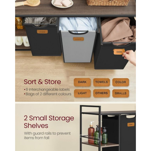 VASAGLE kôš na bielizeň 150 L, 3 priehradky, hnedo-čierny