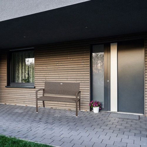 Naša lavička je vhodná na terasu, záhradu, zimnú záhradu alebo balkón a hodí sa do každého interiéru. Robustná oceľová konštrukcia je obalená polyratanovým výpletom odolným proti poveternostným vplyvom a UV žiareniu, takže naša záhradná lavička je ideálna na vonkajšie použitie. Vďaka povrchu odpudzujúcemu nečistoty sa lavička ľahko čistí a je vodeodolná.