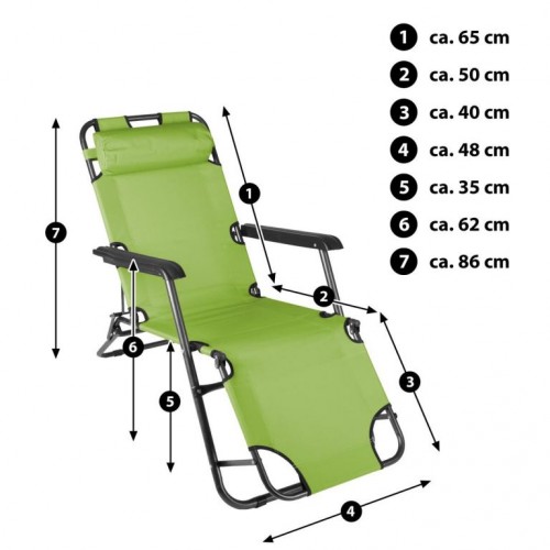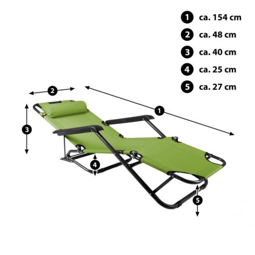 Praktické skladacie ležadlo pre príjemné chvíle na Vašej záhrade. Ležadlo je vhodné na záhradu, terasu, ale aj na dovolenku. Súčasťou je tiež vankúš pod hlavu, ktorý je možné odopnúť.