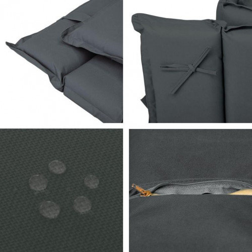 Ležadlo je vyrobené z upraveného teakového dreva s dvomi gumovými kolieskami. Vďaka päťstupňovému nastaviteľnému operadlu sa môžete rýchlo presunúť z polohy ľahu do polohy sedu. Sada obsahuje ľahko udržiavateľnú podložku zo štruktúrovaného polyesteru s 11 segmentmi a vankúšom pre pohodlný spánok. Poťah je stabilný, vodoodpudivý, umývateľný a odnímateľný pre jemné čistenie. Teakové drevo je veľmi odolné voči poveternostným vplyvom, a je preto ideálne pre vonkajšie použitie. Ležadlo je vyrábané ručne, preto je každý kus originálny.