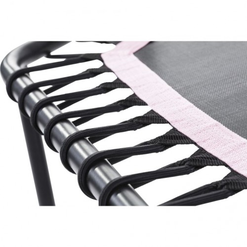 Stabilná konštrukcia s priemerom 100 cm a protišmykovými nožičkami zaručuje bezpečnosť pri každom skoku. Šesť výškovo nastaviteľných držadiel (87–114 cm) sa prispôsobí vašim potrebám. 48 gumových šnúr v závesnom systéme poskytuje tichý a plynulý odraz. Jednoduchá montáž aj údržba.