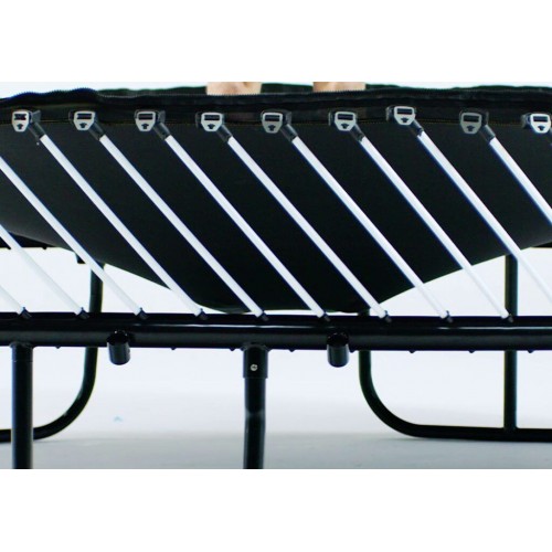 Trampolína Marimex FreeJump je nový prémiový rad. Bezpečnostná sieť je pevne spojená so skákacou plochou. Tradičné pružiny sú nahradené flexibilnými prútmi zo špeciálnej ocele, ktorá vyniká vysokou mierou húževnatosti. 100% priemeru trampolíny = 100% skákacej plochy. Unikátne konštrukčné riešenie umožňuje využiť 100% priemeru trampolíny na skákanie, a to pri zachovaní vysokých nárokov na bezpečnosť a stabilitu. Pružiaci systém je umiestnený pod skákacou plochou trampolíny. Materiál odrazovej plochy je zo špeciálne tkaného materiálu. Skákacia plocha bola testovaná na 3 milióny rázov. Vnútornú ochrannú sieť nájdete priamo v balení, nemusíte si ju dokupovať zvlášť. Vnútorná ochranná sieť je bezpečnejšia ako vonkajšia sieť - bráni prístupu skákajúceho do časti s pružinami. Medzera medzi ochrannou sieťou a skákacou plochou trampolíny je vyplnená zipsom. Aktuálne na trhu je to najbezpečnejšie riešenie spoja. Ochranná sieť bráni vypadnutiu. Tyče sú obalené ochranným návlekom z mäkčenej peny. Nohy trampolíny sú samostatné a zvyšujú stabilitu celej trampolíny. Spojenie tyčí nôh trampolíny a siete je istené špeciálnymi sponami.