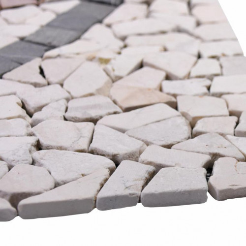 Táto krásna mozaika so svojimi jemnými prírodnými farbami zvýrazní váš vchod do domu, chodbu alebo terasu. Vašej kreativite sa medze nekladú. Elegantná mramorová mozaika bola ručne nalepená na 9 špeciálnych podložiek pre jednoduchú inštaláciu. Lámaná mozaika je vyrobená z lešteného mramoru, hrany sú zaoblené. Pri vhodnom spracovaní je mozaika z prírodného kameňa vhodná ako obklad alebo dlažba a je možné ju použiť v interiéri aj exteriéri.