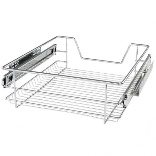 Táto zásuvka zaisťuje poriadok nielen v kuchynskej skrini, ale využitie nájde aj v spálni alebo v obývacej izbe. Vďaka svojej teleskopickej funkcii je možné ju ľahko vytiahnuť a zasunúť späť. Je tu priestor pre potraviny, domáce potreby a mnoho ďalšieho. Naše zásuvky vyrobené z robustného pochrómovaného kovu s maximálnou nosnosťou 20 kg uľahčia usporiadanie predmetov v zásuvke.