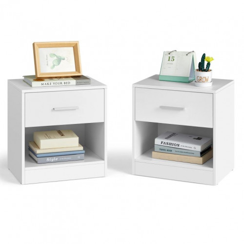 Biele minimalistické nočné stolíky so zásuvkou, 2 ks