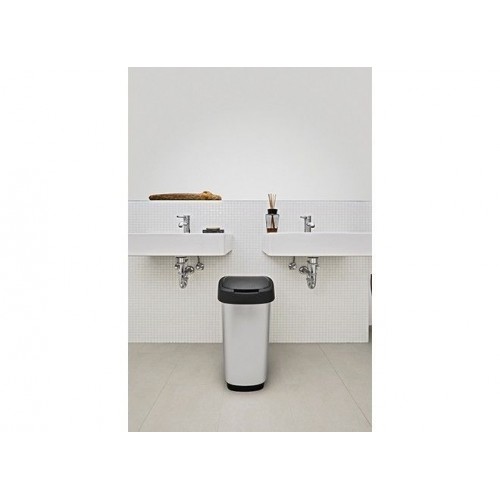 Metalický plastový odpadkový kôš s odklápacím vekom. Dva spôsoby otvorenia koša. Objem 50 l. Kvalitný materiál a prevedenie od švajčiarskej značky Rotho. Klasické a neutrálne prevedenie zapadne do každého interiéru.