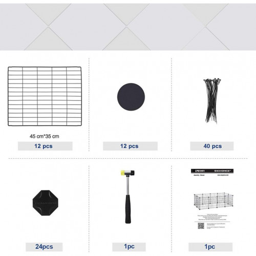 Robustné kovové mriežky spojené odolnými ABS spojkami zaisťujú stabilitu aj pri vyvádzaní. Protišmykové podložky chránia podlahu a husté pletivo bráni zvieratám v uviaznutí. S rozmermi 143 × 73 × 46 cm poskytuje dostatok priestoru, montáž zvládnete bez náradia a vďaka priloženému kladivku a sťahovacím pásikom je zostavenie rýchle a pevné.