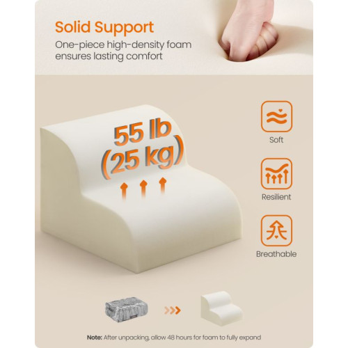 Stabilná konštrukcia z hustej peny zaručuje dlhú životnosť a bezpečnosť pri každom kroku. Protiskluzový povrch z manšestru a gumové bodky na spodnej strane zabraňujú pošmyknutiu. Vodoodolný poťah sa dá ľahko odstrániť a prať v práčke. Nie je potrebná žiadna montáž, stačí rozbaliť a nechať penu expandovať.