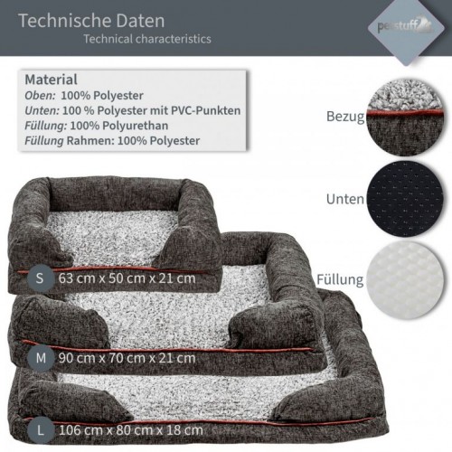 Náš pelech je vhodný aj ako doplnok do búdy, klietky alebo prepravného boxu. Vďaka zakrivenému tvaru pelechu je váha rovnomerne rozložená a tlmí nárazy, čo je nielen pohodlné, ale tiež chráni kĺby zvieraťa. Zips umožňuje jednoducho zložiť poťah a vyprať v ruke alebo na nízkej teploty. Vodoodpudivá vnútorná fólia navyše chráni penu pred nečistotami. Pelech má zvýšený a polstrovaný okraj a spodná strana je z robustného materiálu, vďaka protišmykovým gombíkom sa znižuje kĺzanie.