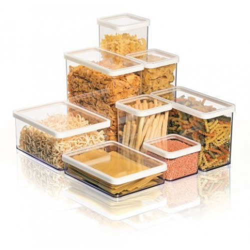 Sú plne transparentné, so silikónovým tesnením vo veku. Zaisťujú čerstvosť skladovaných produktov a chránia pred vonkajšími vplyvmi a vlhkosťou.