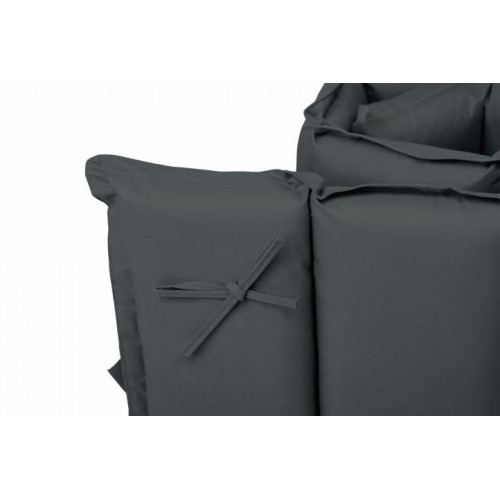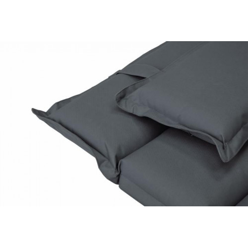 Polštář je připevněn 2 pásky na podložce a podle potřeby jej můžete sklopit dozadu. Dvěma upevňovacími pásky na zadní straně podložky upevníte podložku k lehátku.