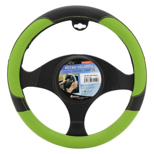 Štýlový poťah volantu s unikátnym prevedením, v pastelovo zelenej farbe s čiernym podkladom a pastelovo zeleným prešívaním. Poťah je príjemný na dotyk, ergonomicky tvarovaný s perforáciou pre uľahčený úchop. Poťah chráni volant pred opotrebením a zlepšuje riadenie.